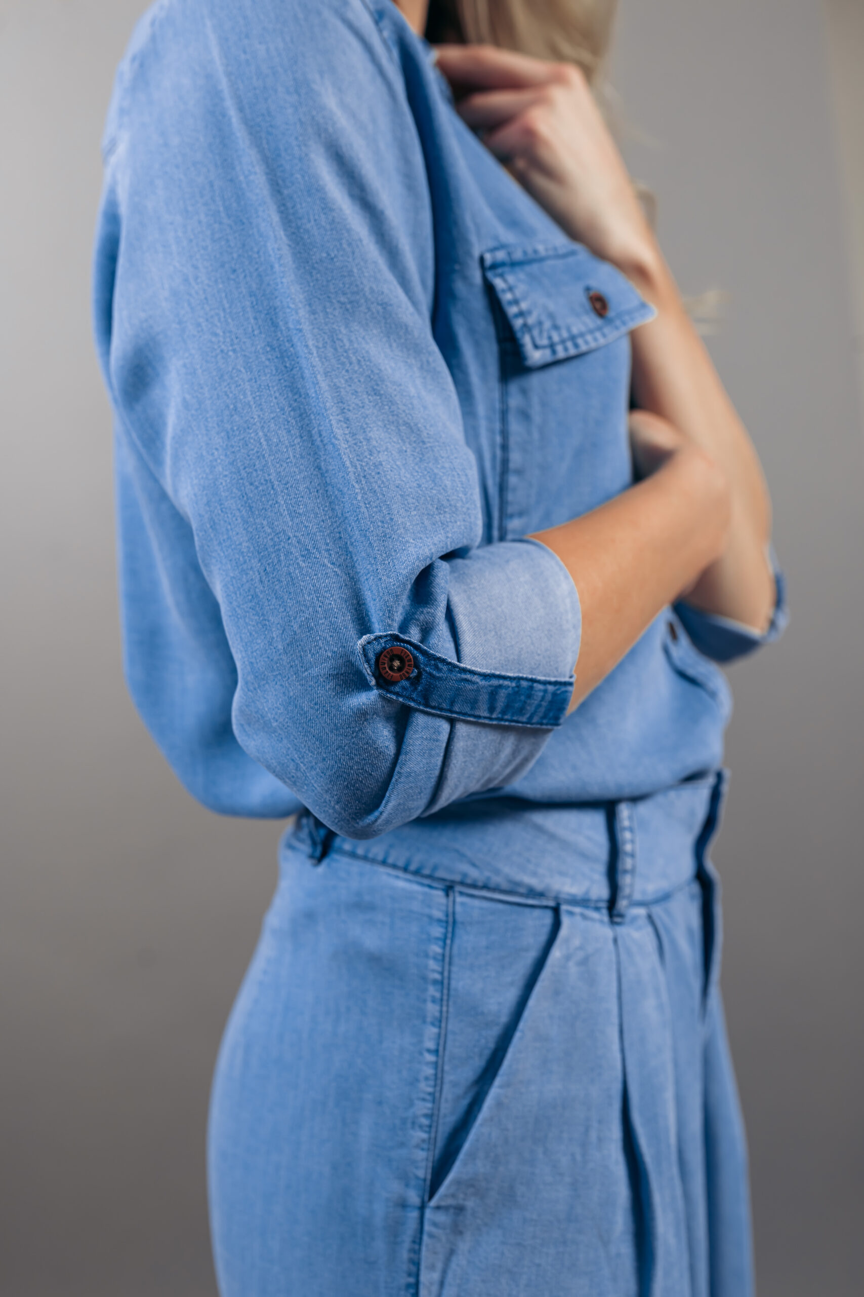 Cómoda camisa confeccionada en nuestra suave tela de algodón, con cuello clásico, lavado hielo, bolsillos cuadrados y botones en la parte delantera.