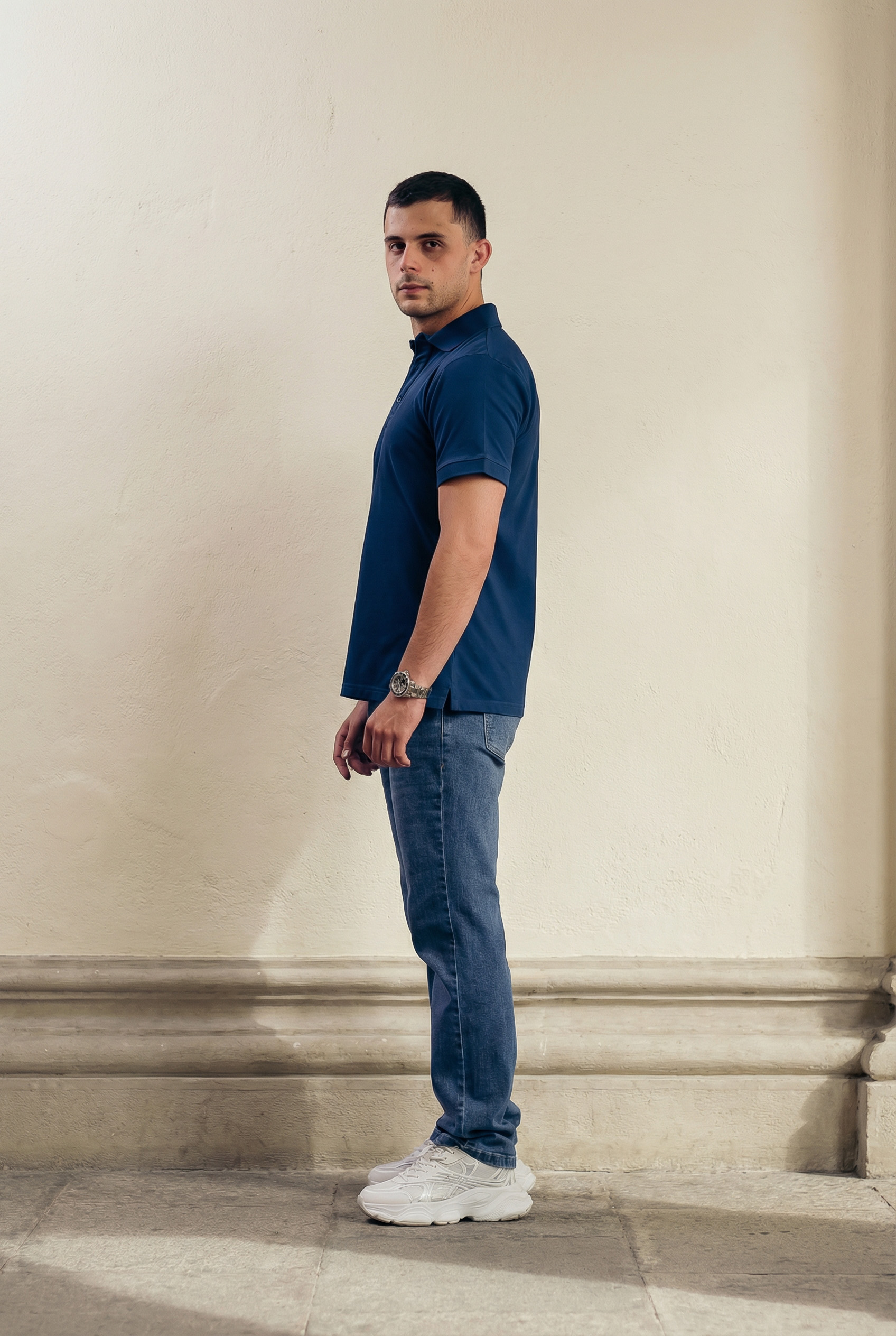 Cómoda camisa confeccionada en nuestra suave tela de algodón, con cuello tipo camisa.