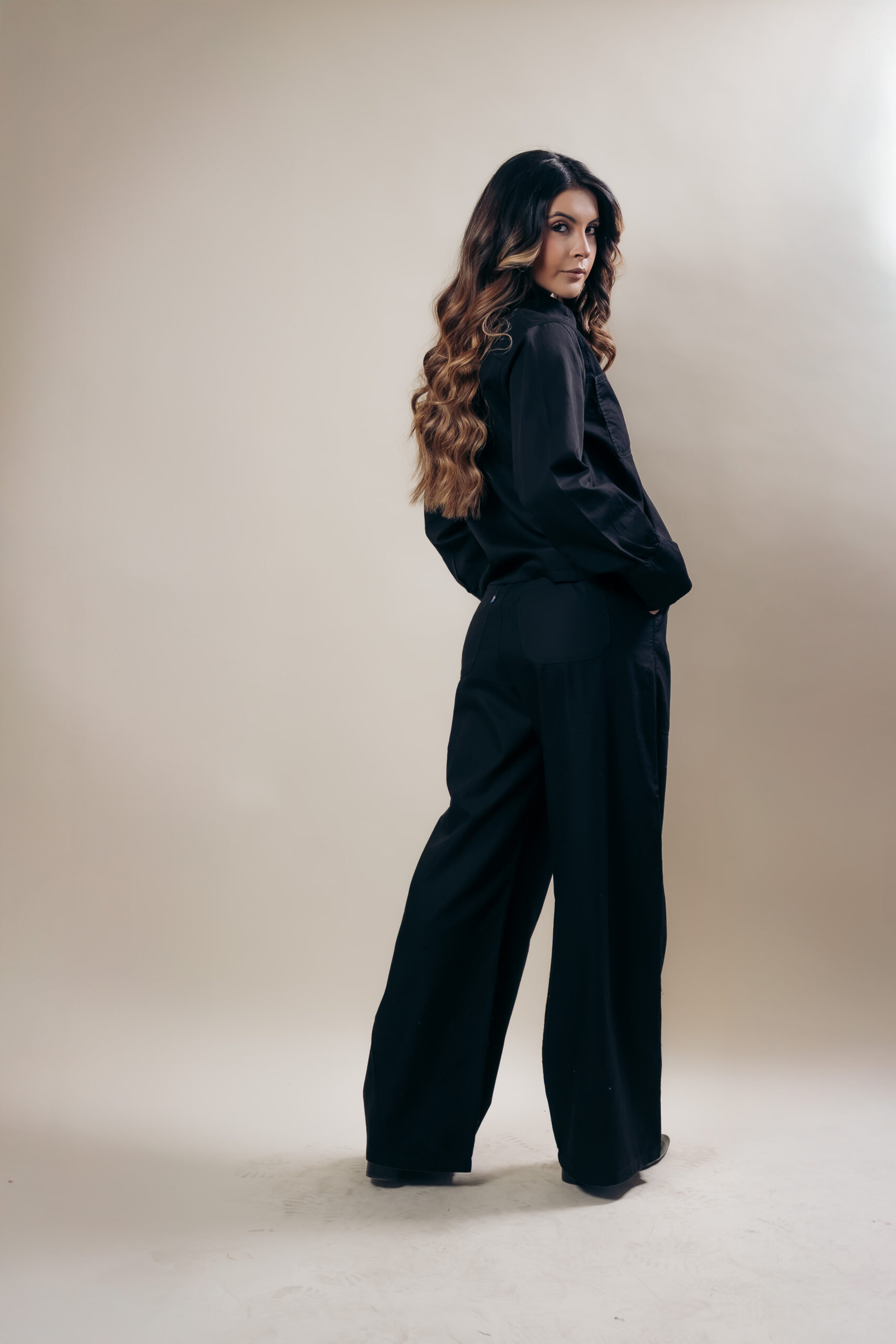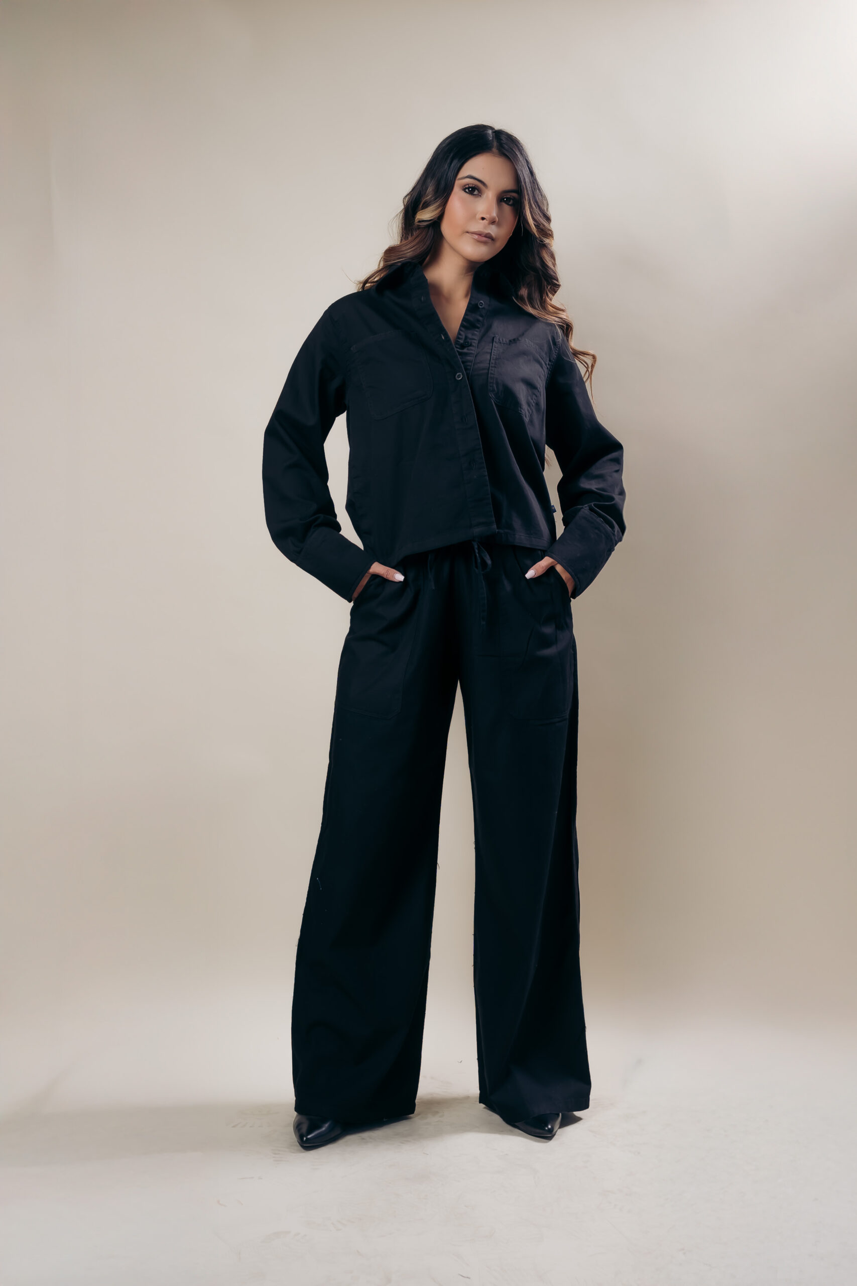 Jeans Palazzo de tiro alto de tendencia en nuestro cómodo denim, con un lavado negro, elástico en la cintura para mayor comodidad para todo el día, y basta un poco alta.