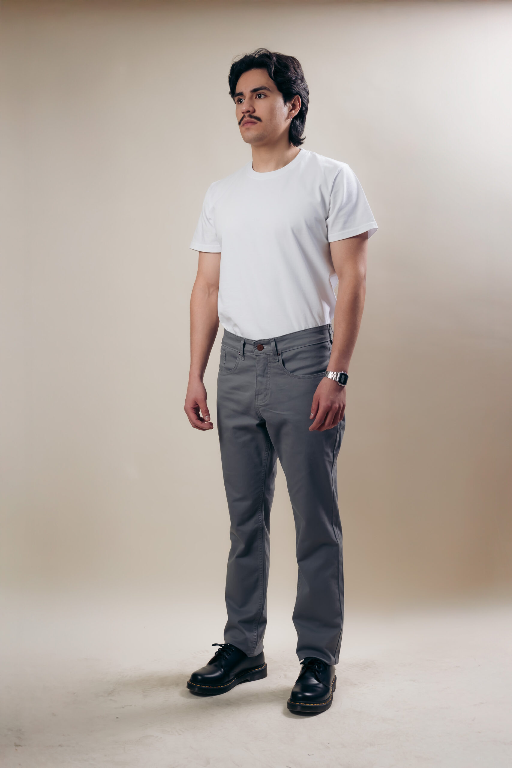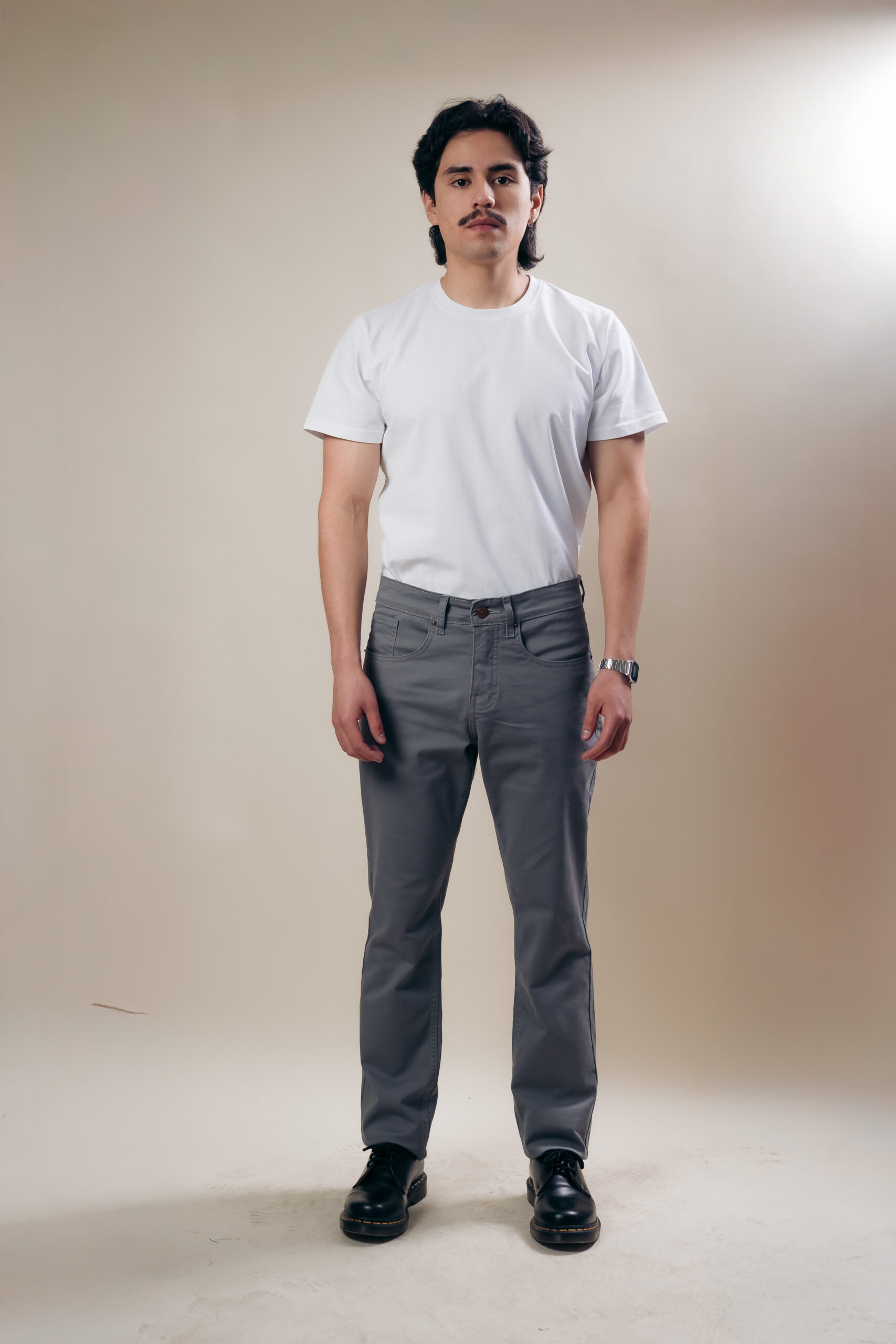 Pantalón con nuestra cómoda gabardina elástica para todo el día, con un color gris.
