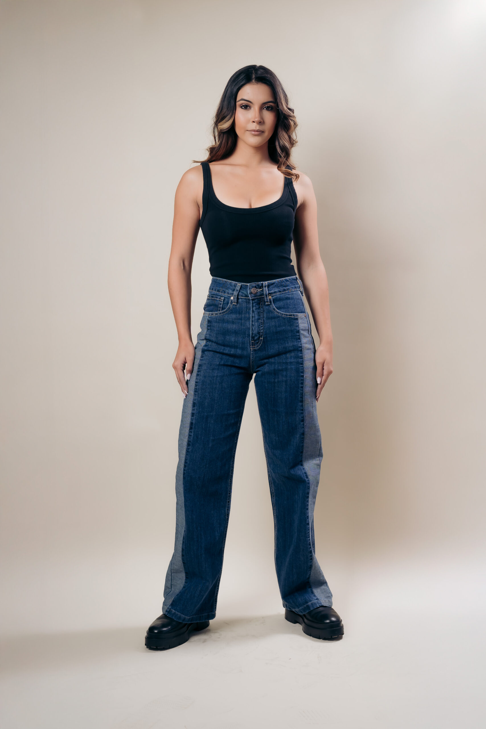 Jeans recto de tiro alto de tendencia en nuestro cómodo denim elástico para todo el día, con un detalle a los costados.