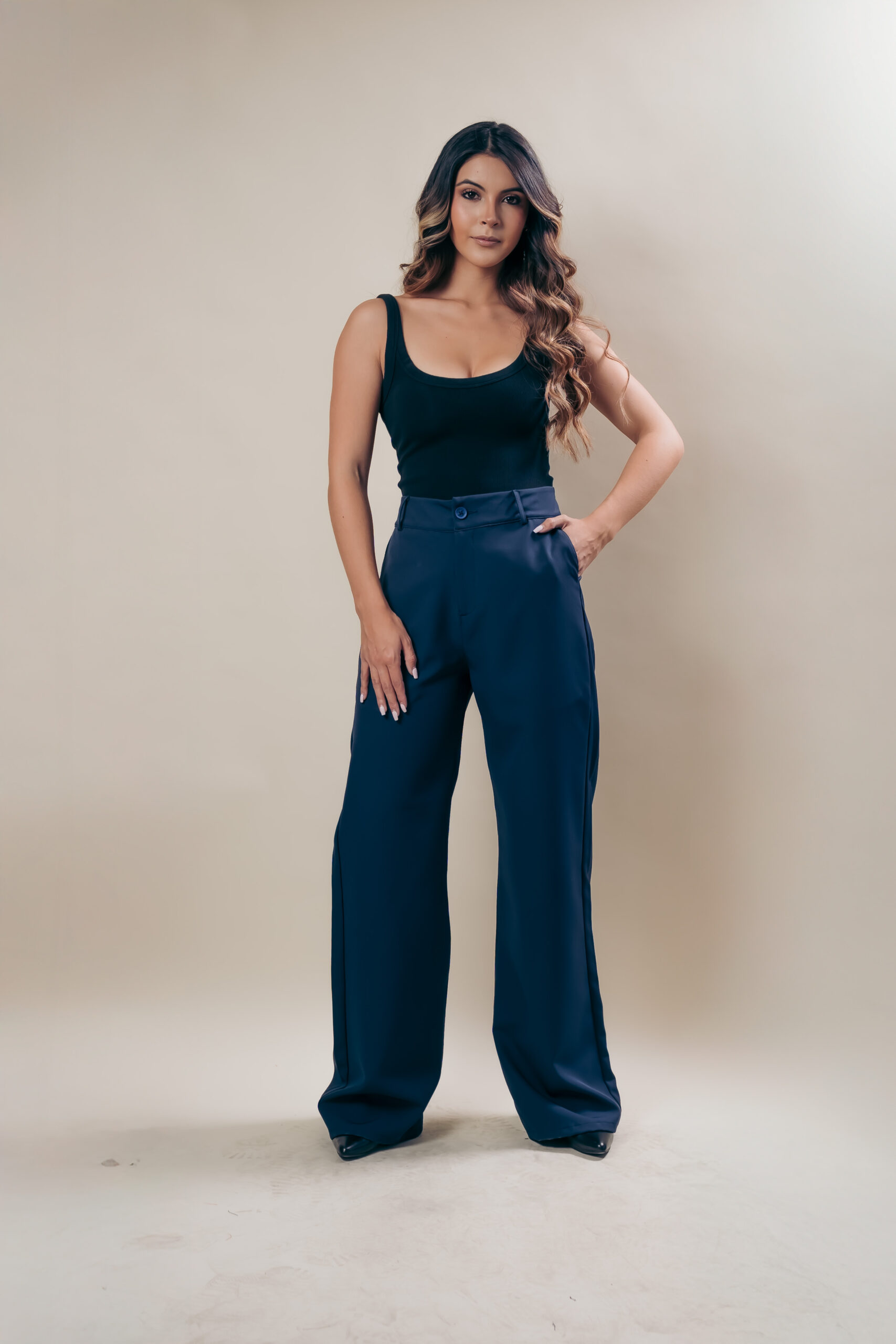 Pantalón recto de tiro alto de tendencia en nuestro cómoda tela elástico para todo el día.