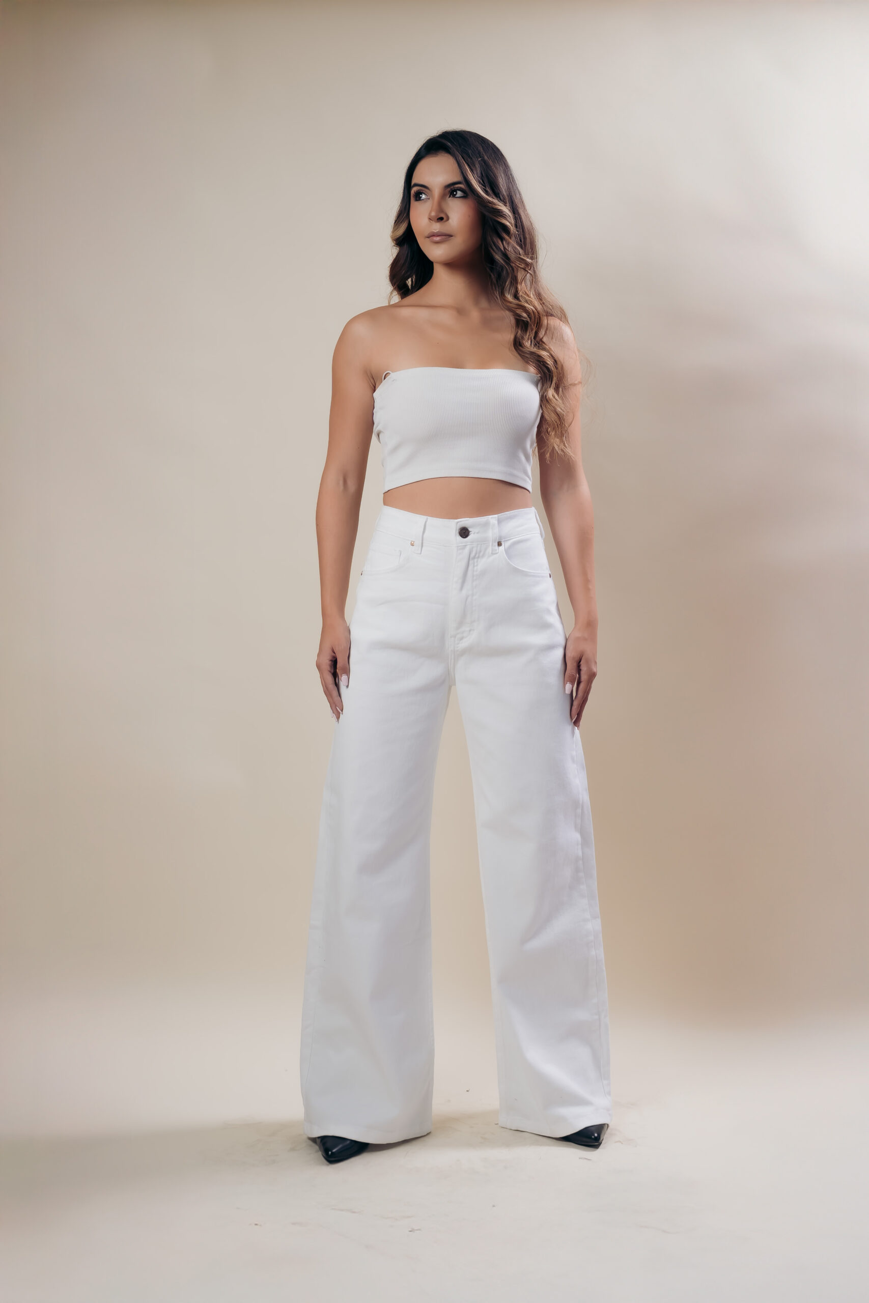 Jeans Wide Leg de tiro alto de tendencia en nuestro cómodo tela blanca elástica para todo el día, con un diseño espectacular sencillo.