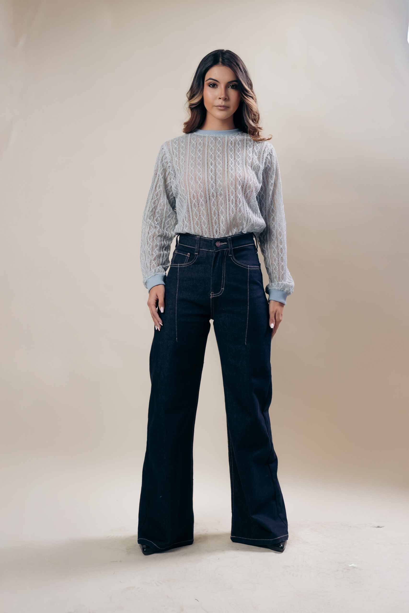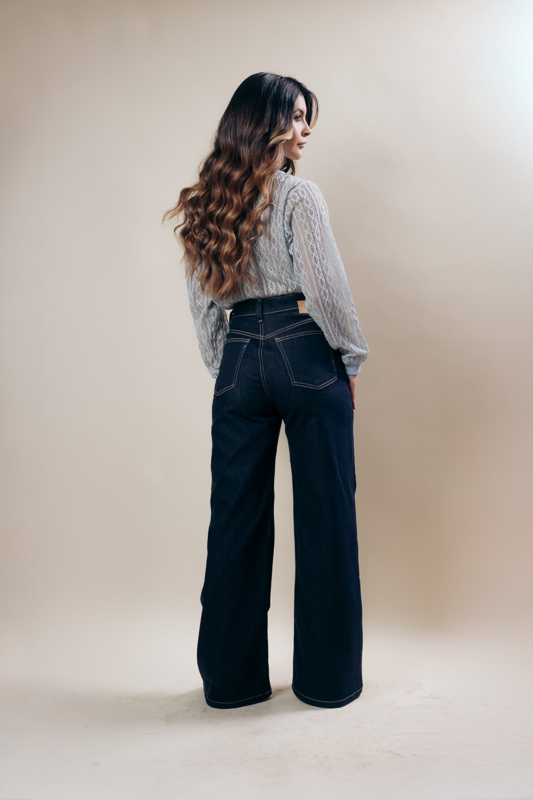 Jeans Wide Leg de tiro alto de tendencia en nuestro cómodo denim elástico para todo el día, con un diseño espectacular sencillo y unas pinzas delanteras.