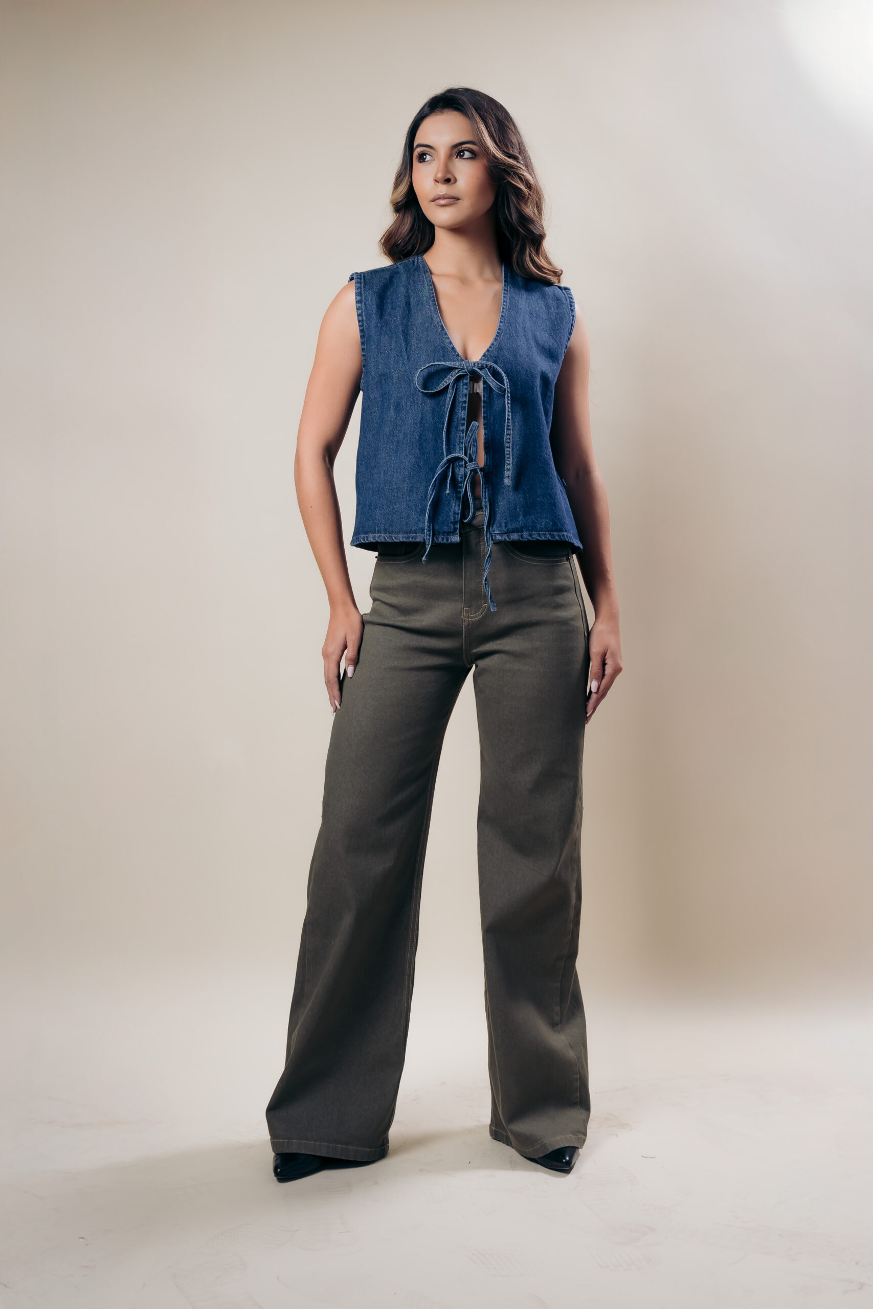Jeans Wide Leg de tiro alto de tendencia en nuestro cómodo denim verde oliva elástico para todo el día, con un diseño espectacular sencillo.